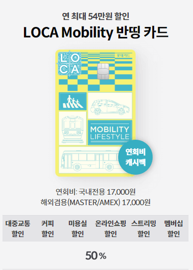 LOCA Mobility 반띵 카드 연회비는 국내전용 및 해외겸용 1만7000원.