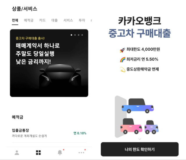 최근 카카오뱅크에서 중고차 구매 대출상품을 출시했다.